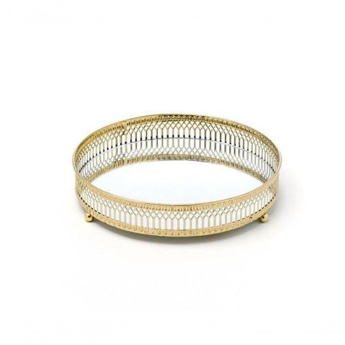 Bandeja Dourada Em Metal Com Espelho 6544 0171 - Mart