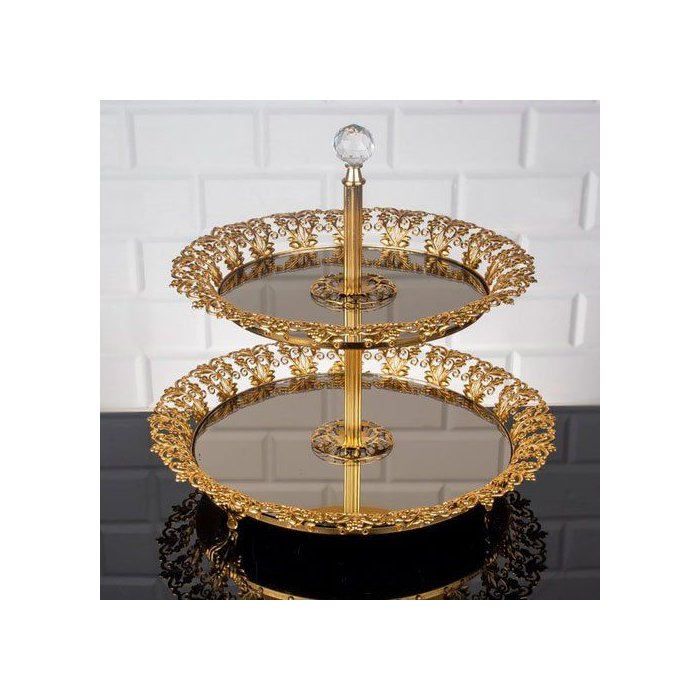 Saiba mais sobre a Bandeja e Doceira Turca Redonda de 2 andares em Metal Dourado para sua Sobremesa e Frutas Pronto a Entrega.
