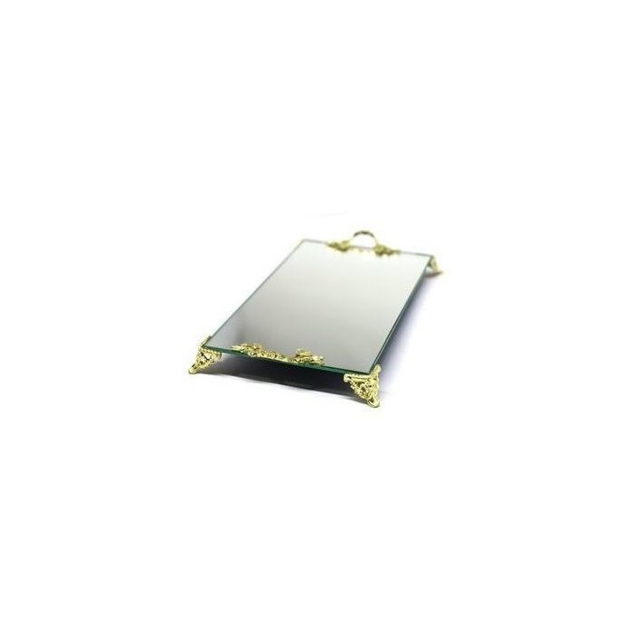 Bandeja Espelhada Alça Prata Lavabo Banheiro Luxo 22x14 Dourada