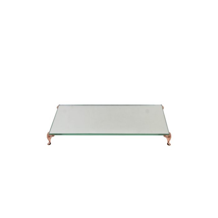 Bandeja Espelhada Decorativa Lavabo Banheiro Pé Rose 14x24cm