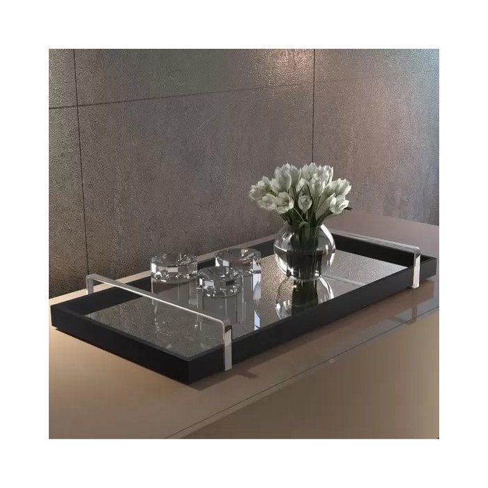 Bandeja Espelhada Decorativa Madeira com Alça e Espelhada:laca Preto/preto Laca Preto