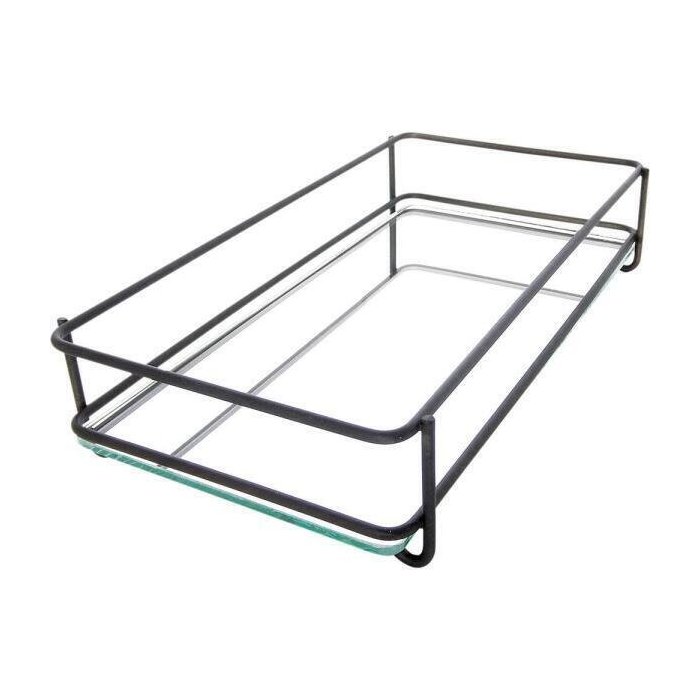 Esta bela bandeja decora seu ambiente de uma maneira sofisticada e bonita Também pode ser usada para servir Produto de alta qualidade Modelo: Fence Black Matte Material: Estrutura de Aço com Pintura Automotiva e Base de Vidro Espelhado Dimensões: 10x4x20cm (LxAxP) Peso: 0,500 kg Forma da bandeja: Retangular