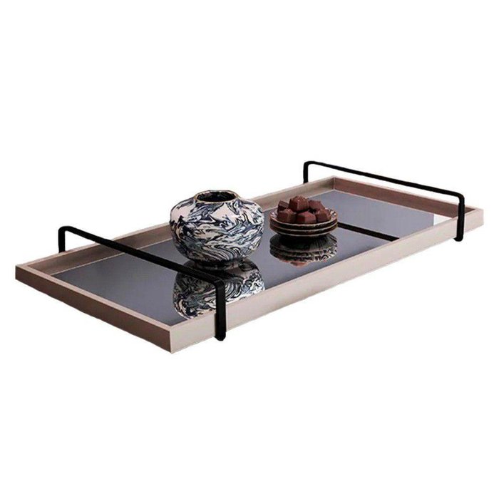 Bandeja Espelhada Laqueada com Alça Preta Tna Decor