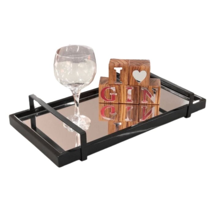 Bandeja Espelhada Laqueada Preto com Alça Preta