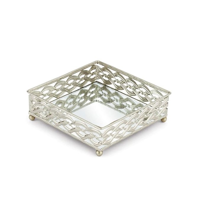 Bandeja Espelhada Quadrada Francesa Prata 16cm X 16cm - Mek