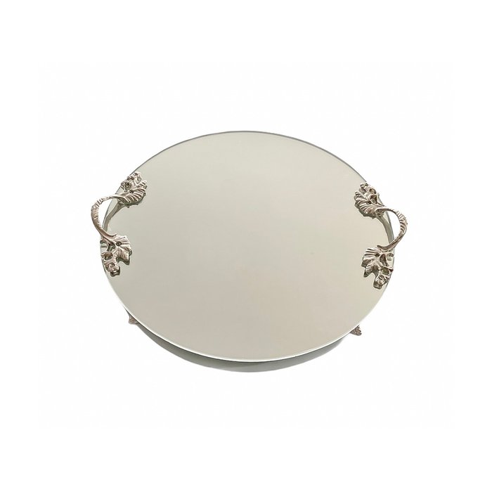 Bandeja Espelhada Redonda com Alças e Pés Prata 30x30 Senhor Vidro