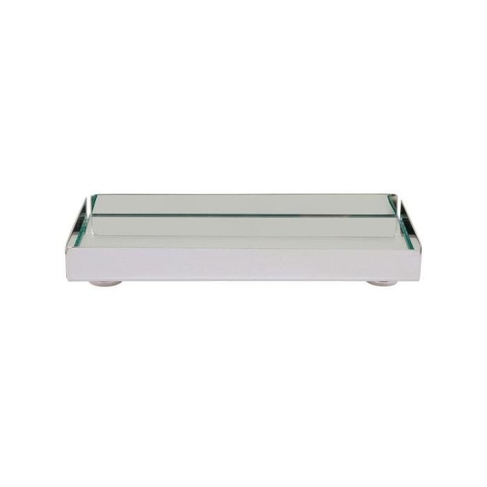 Bandeja Pequena para Lavabo com fundo em Espelho e Bordas retas, 15 x 15 cm, em Prata Sheffield.