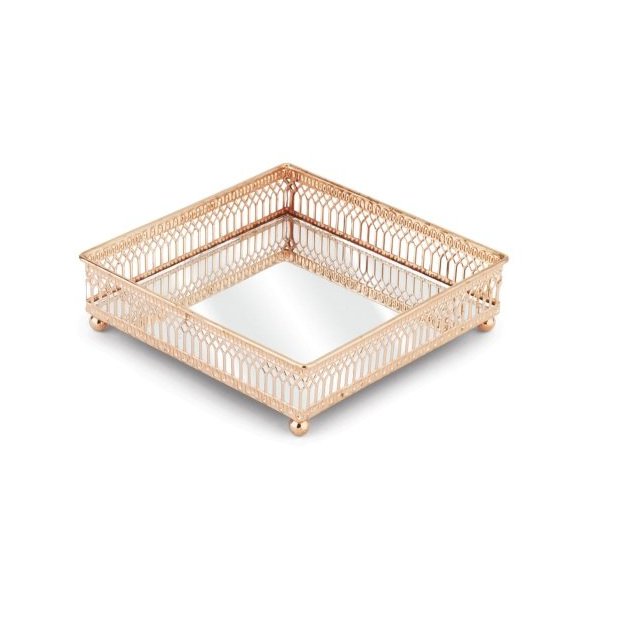 Bandeja Luxo Italiana Quadrada Cobre 16x16x4,5cm Material: Ferro com Espelho Cor: Cobre Dimensões: 16x16x4,5cm