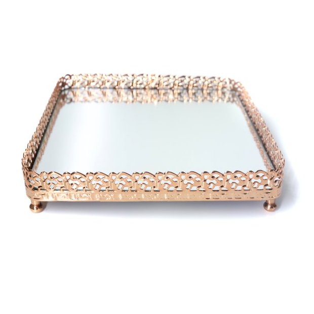 Bandeja Luxo Ouro Rose Retangular Metal Com Espelho 17X20 Descrição: Você merece o que há de melhor, por isso essa Bandeja foi feita para você, refletindo a sofisticação que uma peça de decoração precisa ter. Ela tem um tamanho médio, sendo de 20 centímetros de comprimento e 17 centímetros de largura. É uma peça resistente a manchas, e tem sua superfície coberta com uma camada envernizada, o que protege a peça de riscos e manchas, dando uma durabilidade incrível para a mesma. Os detalhes dourado rose, que dá um trabalhado único para a peça, com o brilho suave e a base espelhada, que levará elegância e sofisticação tanto à sua decoração em geral, como na hora de receber visitas. Além de extremamente elegante, oferecendo requinte, beleza e muita sofisticação. O modelo conta com um design sofisticado e retrô, suas bordas são trabalhadas com detalhes texturizados floral super delicado e elegante, na cor ouro rose. Características: Cor: Ouro Rose Largura: 17cm Comprimento: 20cm Altura: 4cm Material: Metal Peso: 390g Conteúdo: - 1 x Unidade de Bandeja Retangular Com Espelho Cod: 3556 Sku: TB000331