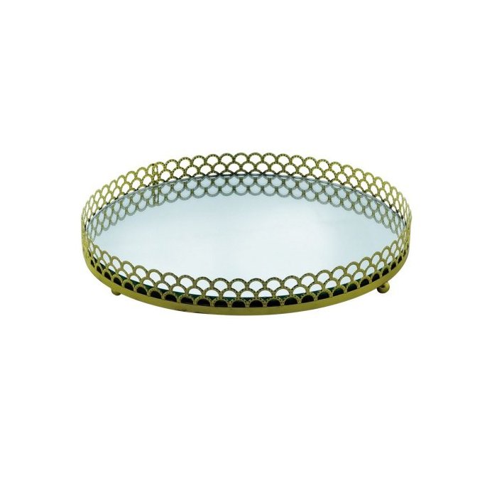 Bandeja Metal Com Espelho Redonda Arch Border Dourada Pequena 20x20x3cm 44355