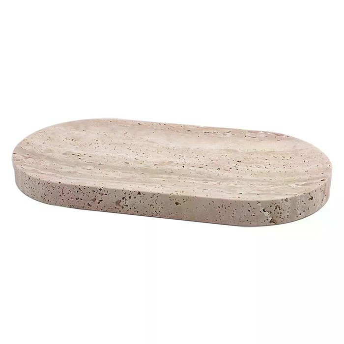 Bandeja Oval Decorativa em Pedra Bege 30cm Bege