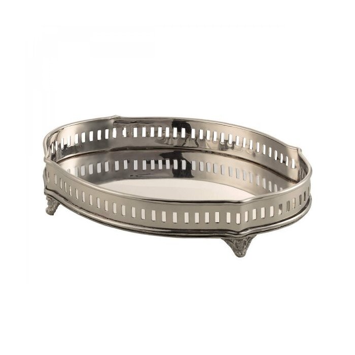 Bandeja Oval Pé Latão 19cm Lyor Prata
