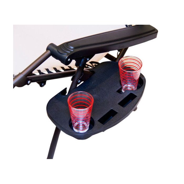 Bandeja para Encaixe em Pernas de Cadeira/Espreguiçadeira com Porta Copos preta