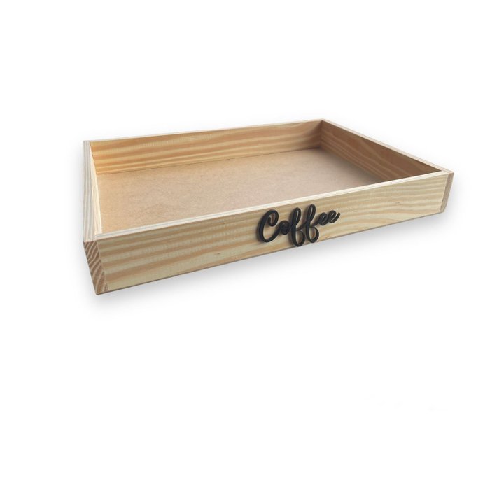 Possui a escrita Coffee em alto-relevo na parte frontal da peça, na cor preto, dando um toque especial na bandeja.