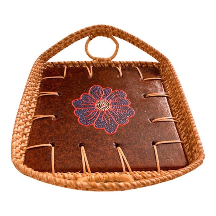 Bandeja Rattan e Ceramica Floral Pintada a Mao - Indonesia 7 colorido