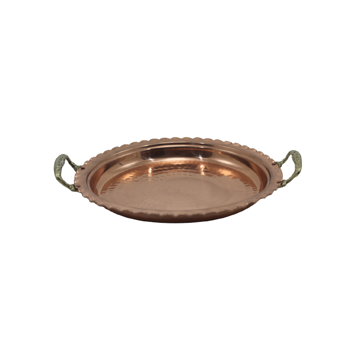Bandeja Redonda Cobre Puro com Alças em Liga de Bronze 33cm