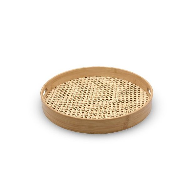 Bandeja Redonda em Bambu com Palha Indiana Natural