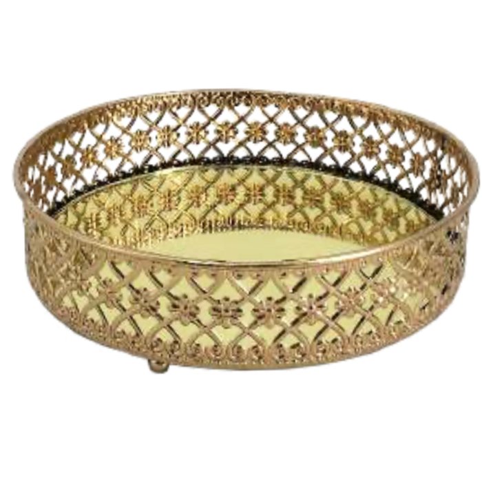 Bandeja Redonda Espelhada Metal Dourada - 17,5cm