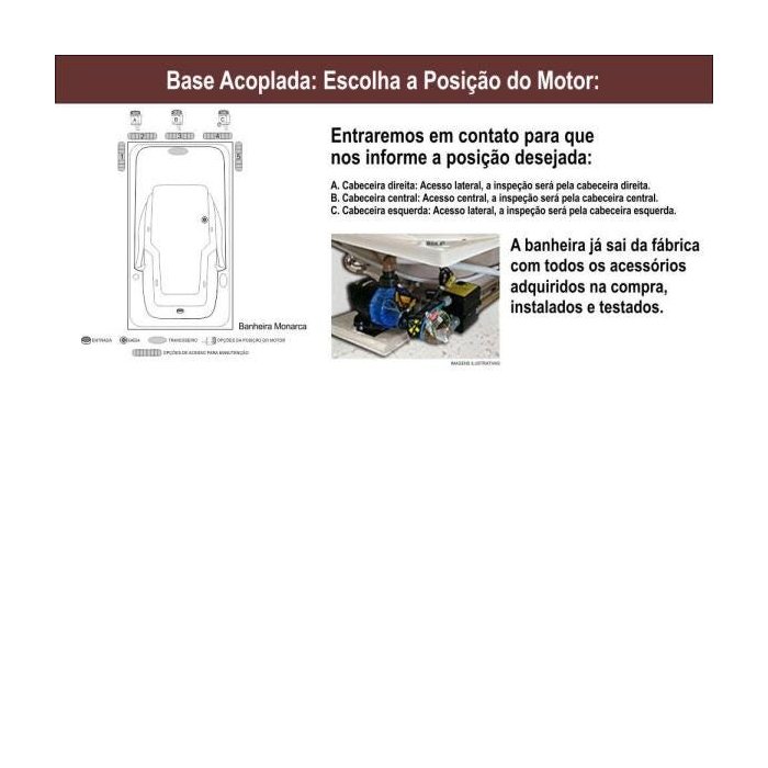 Banheira de Hidromassagem Monarca Individual 1,50x0,90x0,43 Acrilico-Completa