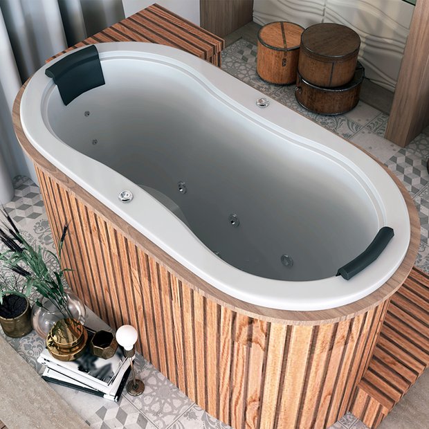 Tradicional modelo japonês, o Ofurô é caracterizado pelo formato mais fundo e curto que as banheiras ocidentais, permitindo ao usuário banhar-se na posição fetal. A Banheira Ourô Oval Dupla Elegance, confeccionada em gel coat, conta com 4 jatos, 2 Travesseiros, 6 jatos plus, motor 1cv solto, acionador pneumático