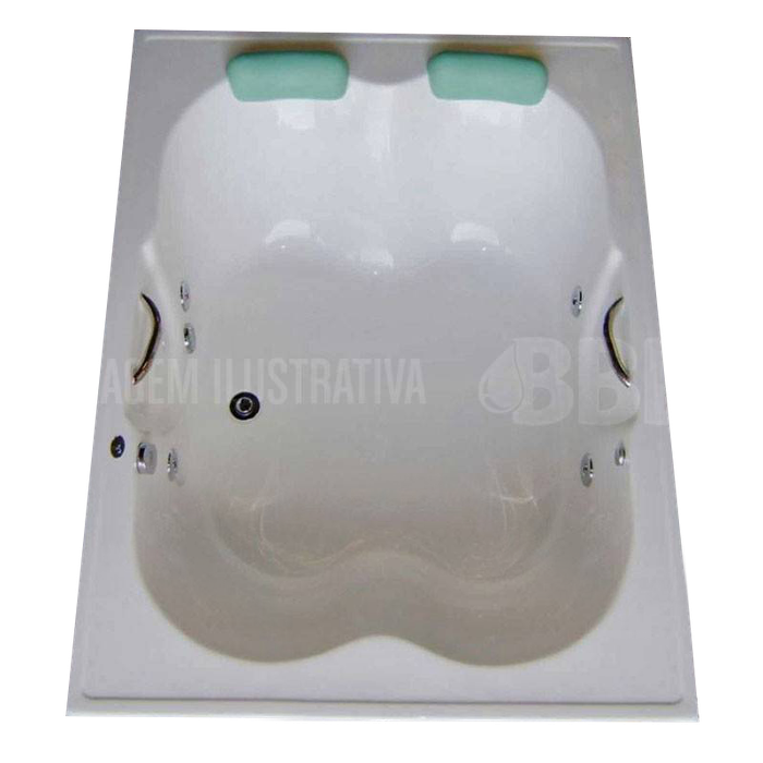 Essa banheira é equipada com: - 1 Par de alças de apoio- 2 Apoio de cabeça- 4 Jatos cromados- 6 Mini jatos- 1 Entrada de água- 1 MotoBomba de 1 cv- 1 Saída de água- 1 entrada de ar (arejador)- 1 Sucção- Tubulaçao de água dos bicos de hidromassagem- Tubulação de ar dos bicos de hidromassagem- Ralo de fundo- Bica Ladrão- Produzida em acrílico.