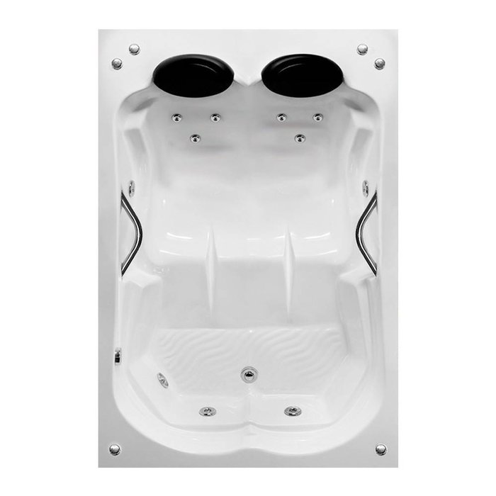 4 Jatos direcionáveis e reguláveis; - 8 Mini Jatos (Nas Costas); - 1 Par de Alças; - 2 Encosto de Cabeça (Travesseiros); - 1 Entrada de água; - 1 Saída de água; - 1 Sucção; - 6 Entrada de ar (Arejador); - Tubulação de água e ar; - 1 MotoBomba de 1 cv auto-drenante; - Produzida em Gel coat (alto brilho) + Fibra de vidro (Espessura de 4,5 a 5mm)