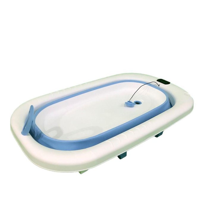 Banheira Infantil Silicone Retrátil com Termômetro e Suporte de Chuveirinho Azul