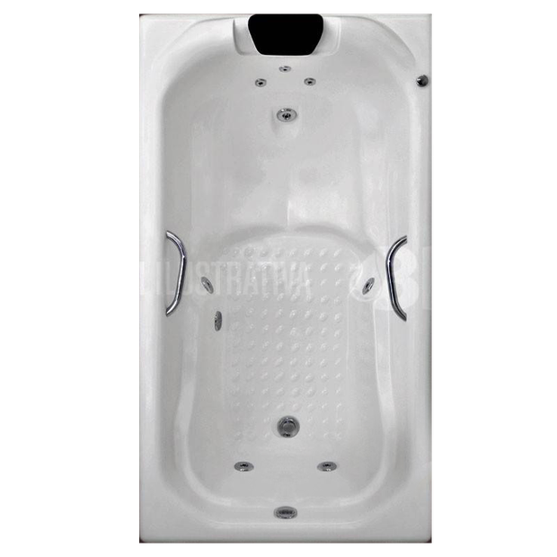 Essa banheira é equipada com:- 1 Par de alças de apoio- 1 Apoio de cabeça- 5 Jatos cromados- 3 Mini jatos- 1 Entrada de água- 1 MotoBomba de 1/2 cv- 1 Saída de água- 1 entrada de ar (arejador)- 1 Sucção- Tubulaçao de água dos bicos de hidromassagem- Tubulação de ar dos bicos de hidromassagem- Ralo de fundo- Bica Ladrão- Produzida em acrílico.