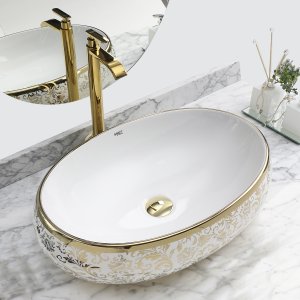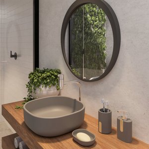 Com as bordas apoiadas sobre a bancada, esse modelo une estilo e funcionalidade, sendo uma ótima opção para banheiros de médio porte.