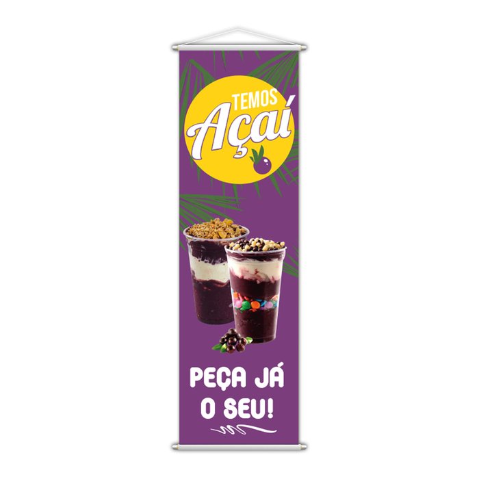 Atraia a atenção dos seus clientes e desperte o apetite com o nosso banner vertical Temos Açaí. Você terá um ambiente sinalizado e que chamará bastante atenção e atraindo cada vez mais clientes para o seu estabelecimento. Adquira o seu hoje e dê à sua açaiteria ou sorveteria uma vantagem competitiva.