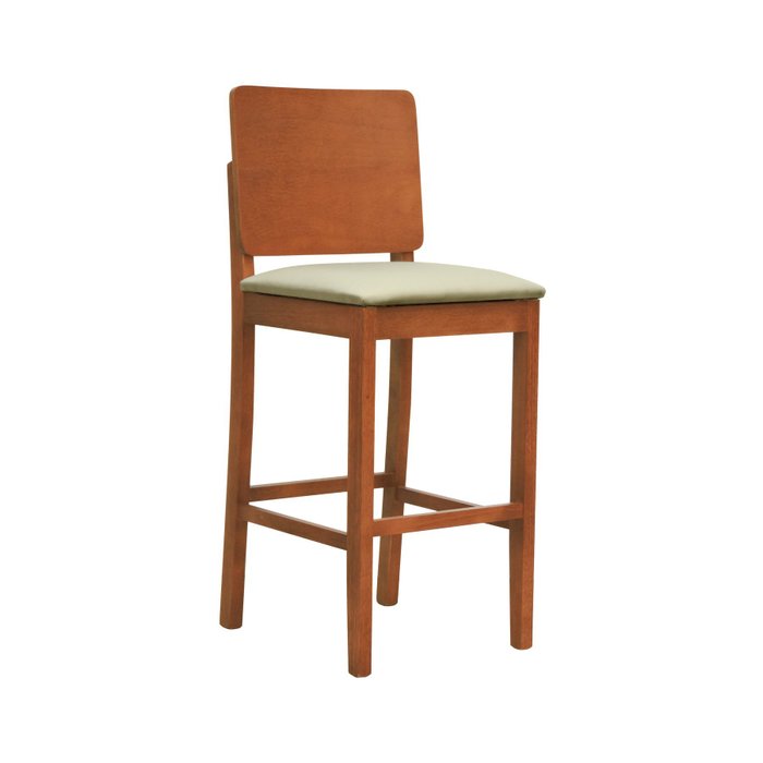 Banqueta Alta Bistrô Madeira Maciça Encosto Anatômico Quéops - Amêndoa Linho Bege