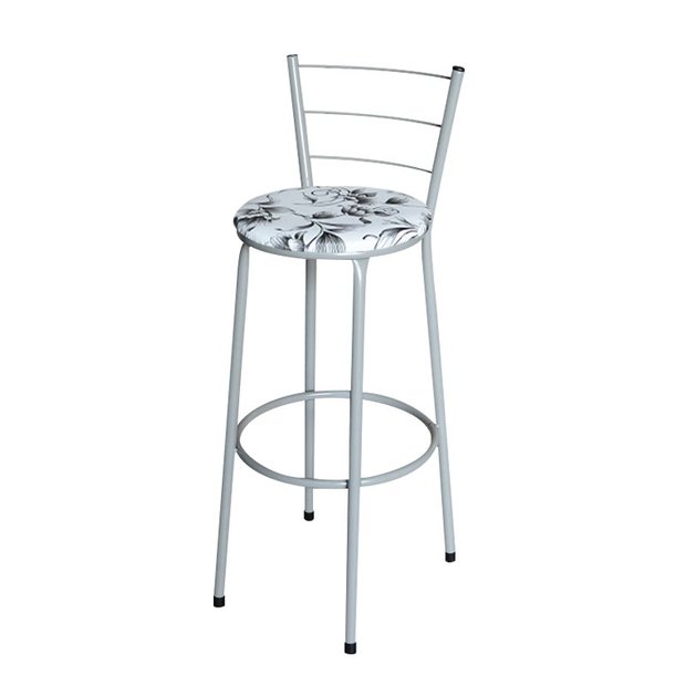 Banqueta Alta Cinza Para Cozinha Assento Estampado