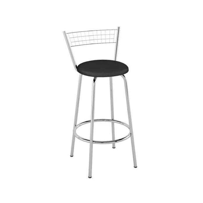 Banqueta Alta com Assento Redondo Vinil 85cm - Aço Cromado/Preto Preto