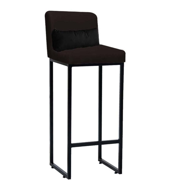 Banqueta Alta com Encosto Lucca Industrial Cozinha Balcão Ferro Preto Sintético Marrom e Almofada Pr Preto