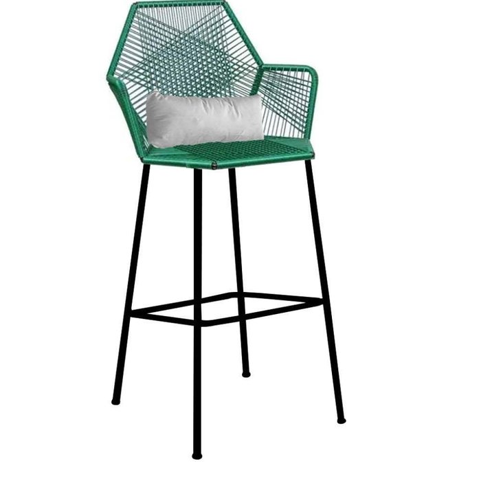 Banqueta Alta Com Encosto Sttar Ferro Verde Fibra Verde Almofada Suede Branco Verde