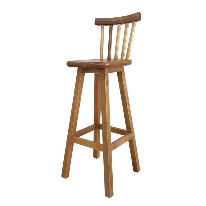 Banqueta Alta de Madeira com Encosto Country Padrão Jequitibá