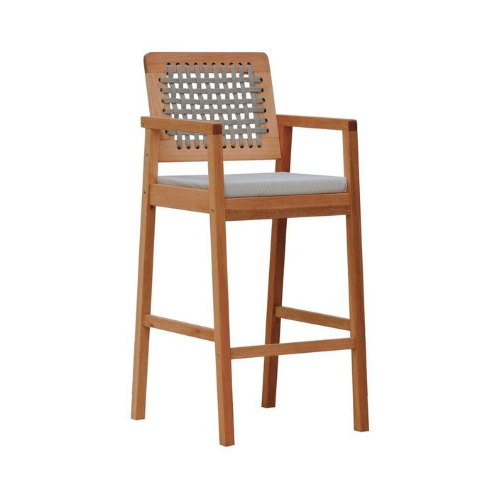 Banqueta Alta Garden Madeira Maciça Assento Estofado Encosto Trançado Corda - Natural Acquablock