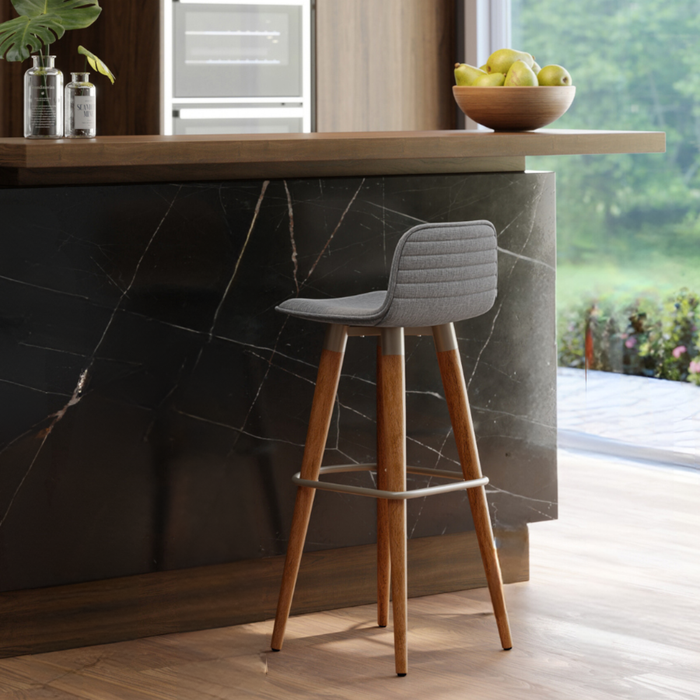 Banqueta Alta Línea Balcão Bar Cozinha Ilha Champanhe Cinza Cinza