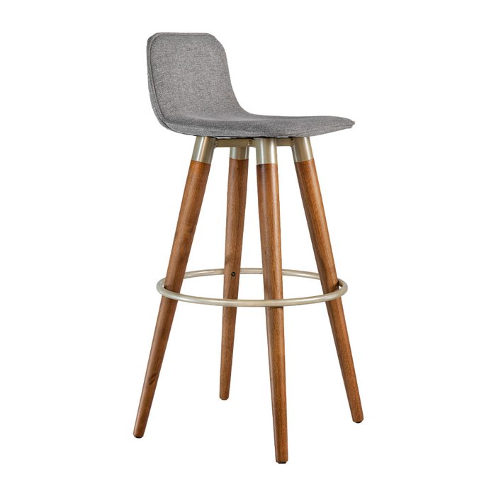 Banqueta Alta Luxo Versatil Aço Champanhe Linho Cinza Base Carvalho Cinza