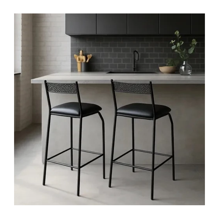 Com um design industrial moderno, ela combina uma estrutura robusta em aço preto com um assento confortável. Seja na cozinha, sala de jantar ou área gourmet, essa banqueta proporciona estilo e praticidade, garantindo o conforto que você merece enquanto valoriza a decoração do seu ambiente.
