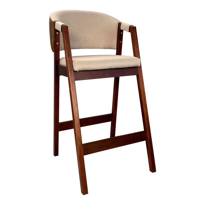 Banqueta Alta para Balcão Ravena em Madeira Maciça Castanho Linho Bege Marrom Ccs Castanho