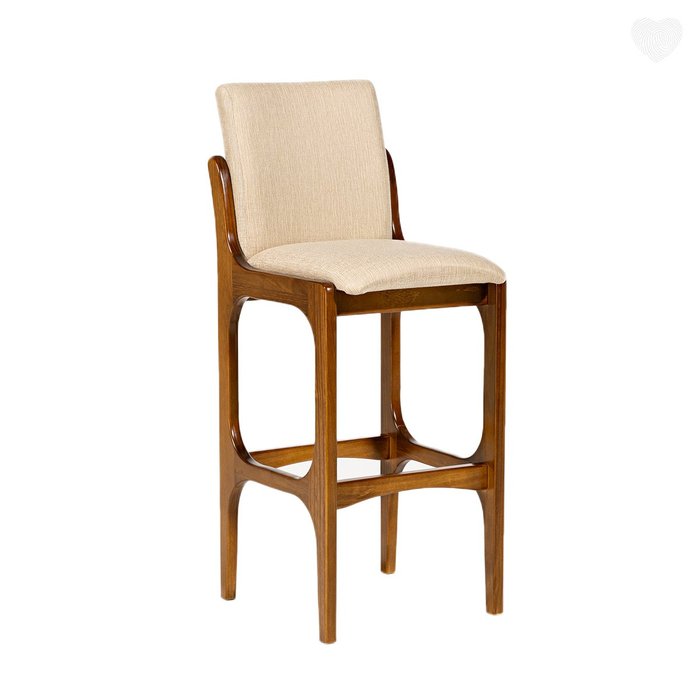 Banqueta Alta para Cozinha Lisboa Madeira Imbuia Linho Bege M58 Rmi