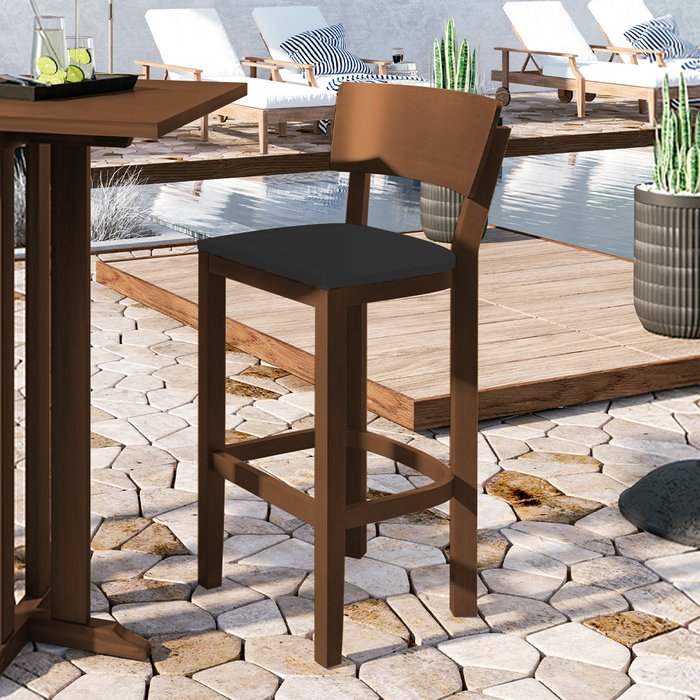 Banqueta Alta Paris Imbuia Base em Madeira Maciça Assento Estofado Preto