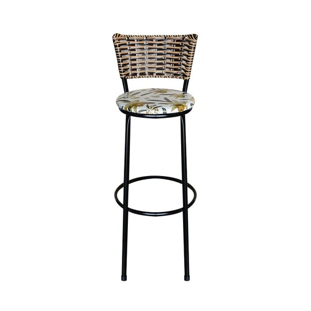 Especificações técnicasDiâmetro do Assento: 32 cmAltura do piso ao assento: 73 cmAltura Total: 95 cmAltura do encosto: 25 cmLargura da base do encosto: 34 cmMaterial do Encosto: Fita Sintética Rattan / JuncoEstrutura: AçoRevestimento do produto: Pintura Epóxi InoxidávelCor do produto: PretaRevestimento do Assento: Espuma D28 com tecido sintéticoPeso suportado: até 150kgPeso aproximado por unidade: 3 kg