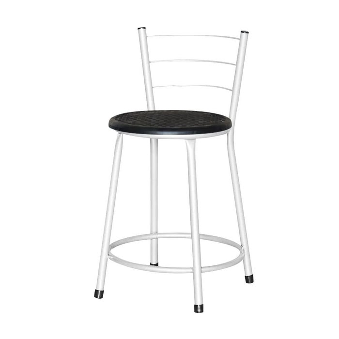 Banqueta Baixa Assento Ratan Branca Retro Preto