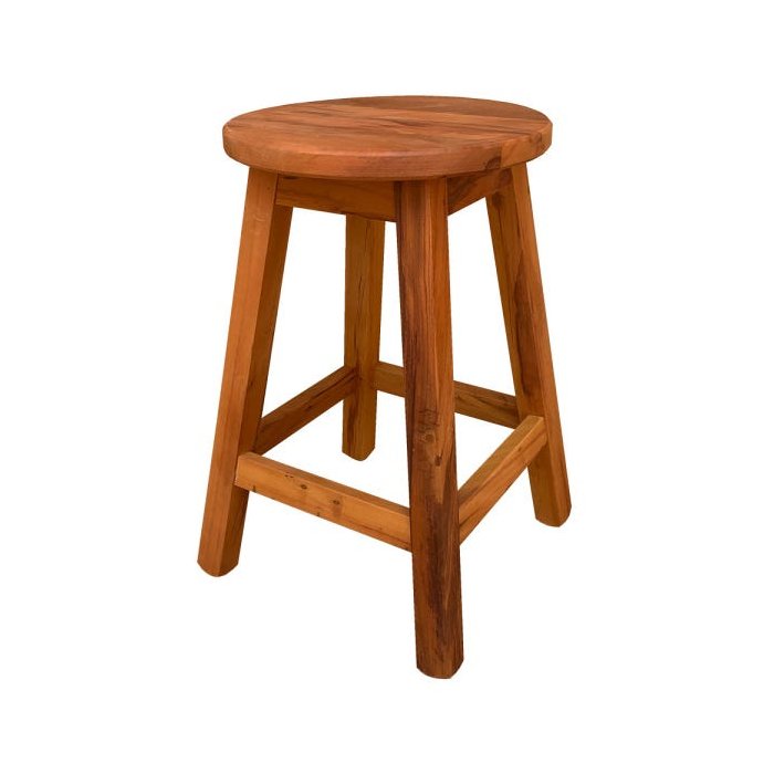 Banqueta Baixa Assento Redondo Sem Encosto Madeira Maciça Cor Peroba Rosa