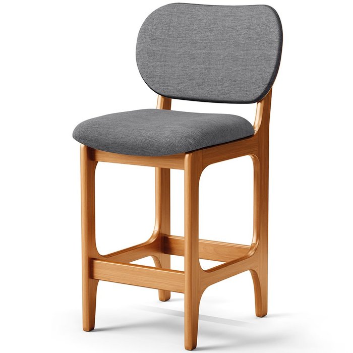 Banqueta Baixa Bar Cozinha Sala Jantar Fixa Betta L02 Imbuia Linho Cinza Escuro - Lyam Decor Banquet