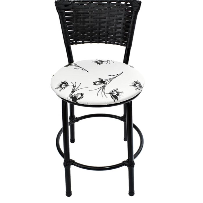 Banqueta Baixa Preta para Cozinha Assento Branco Floral com Encosto Junco Preto