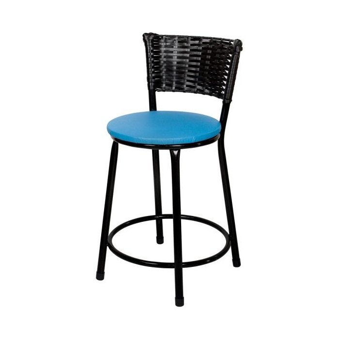 Banqueta Baixa Ratan Hawai Preto - Assento Azul