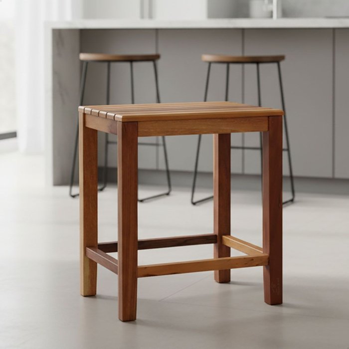 Banqueta Baixa Ripada em Madeira Maciça